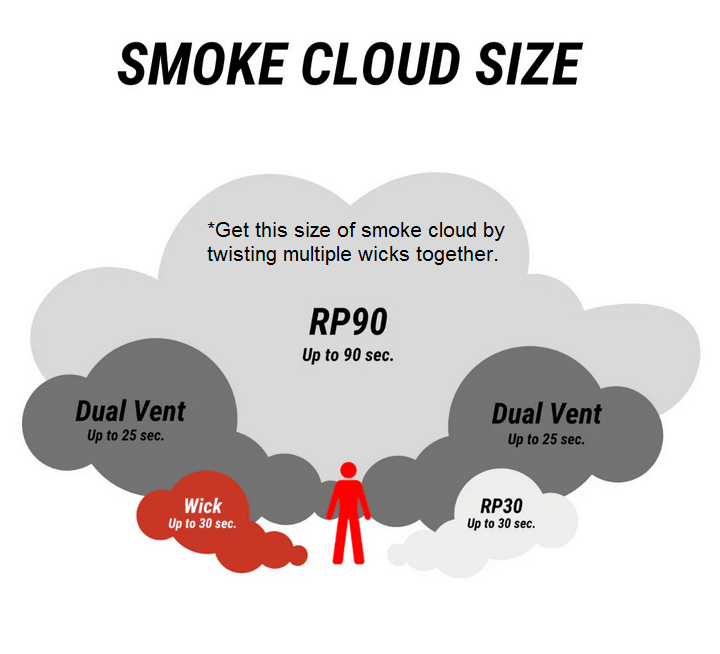 Each smoke bomb lasts up to 35 seconds, producing vivid, bright smoke clouds. We recommend using a couple at a time to get the same effect as our professional Ring Pull smoke bombs. For those of you hoping to avoid that hazmat fee, these new wick activated smoke bombs are perfect!